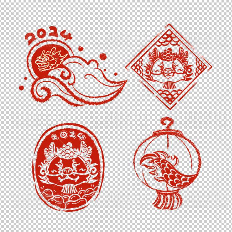 中国风古典龙凤剪纸PNG免抠图透明背景00124