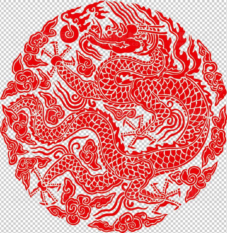 中国风古典龙凤剪纸PNG免抠图透明背景00127