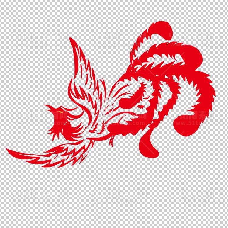 中国风古典龙凤剪纸PNG免抠图透明背景00165