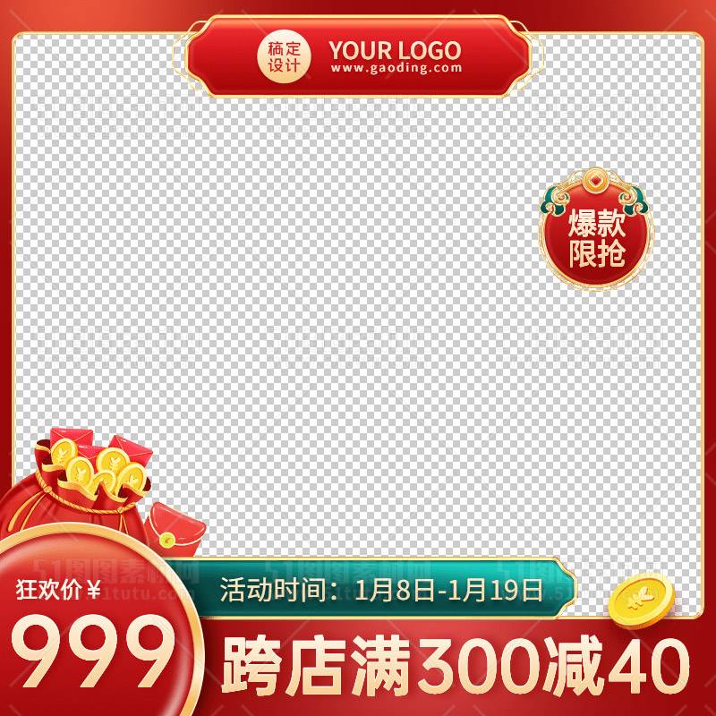 电商大促活动主图边框透明背景PNG图23111600893