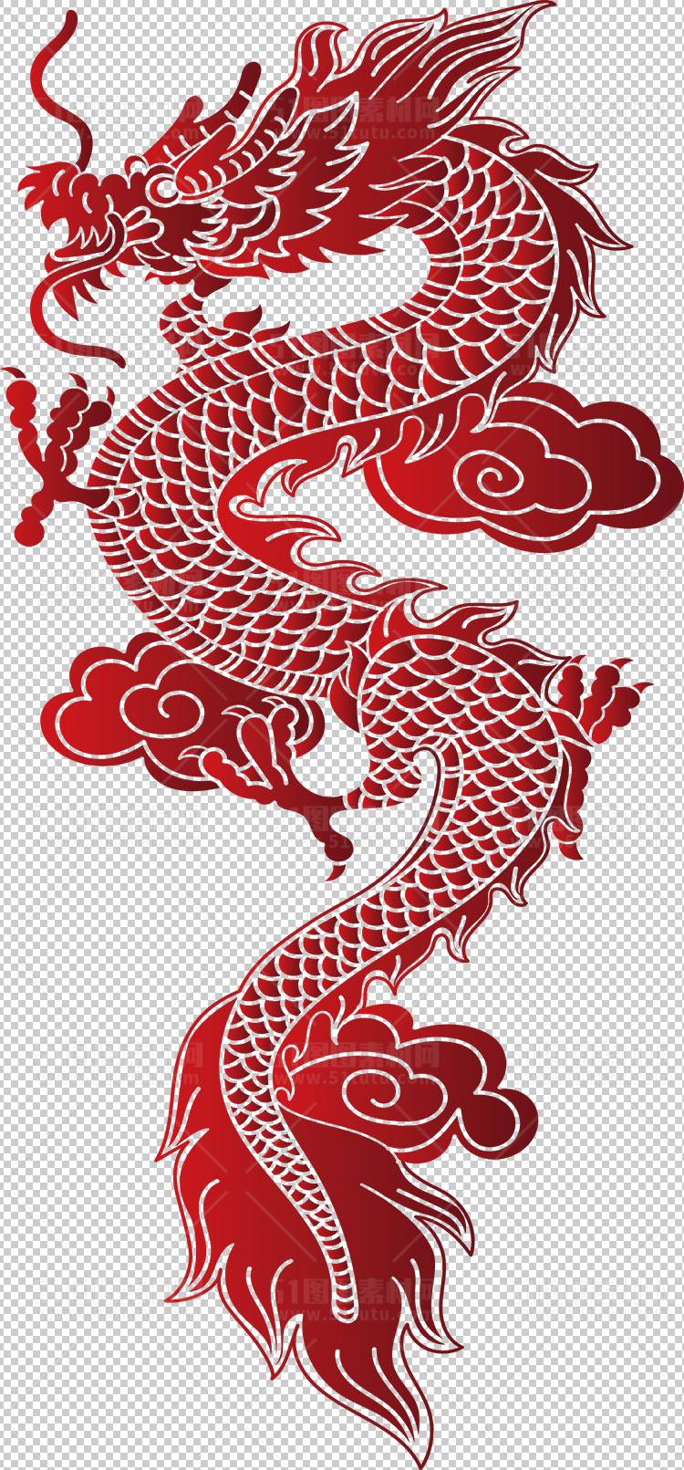 中国风古典龙凤剪纸PNG免抠图透明背景00138