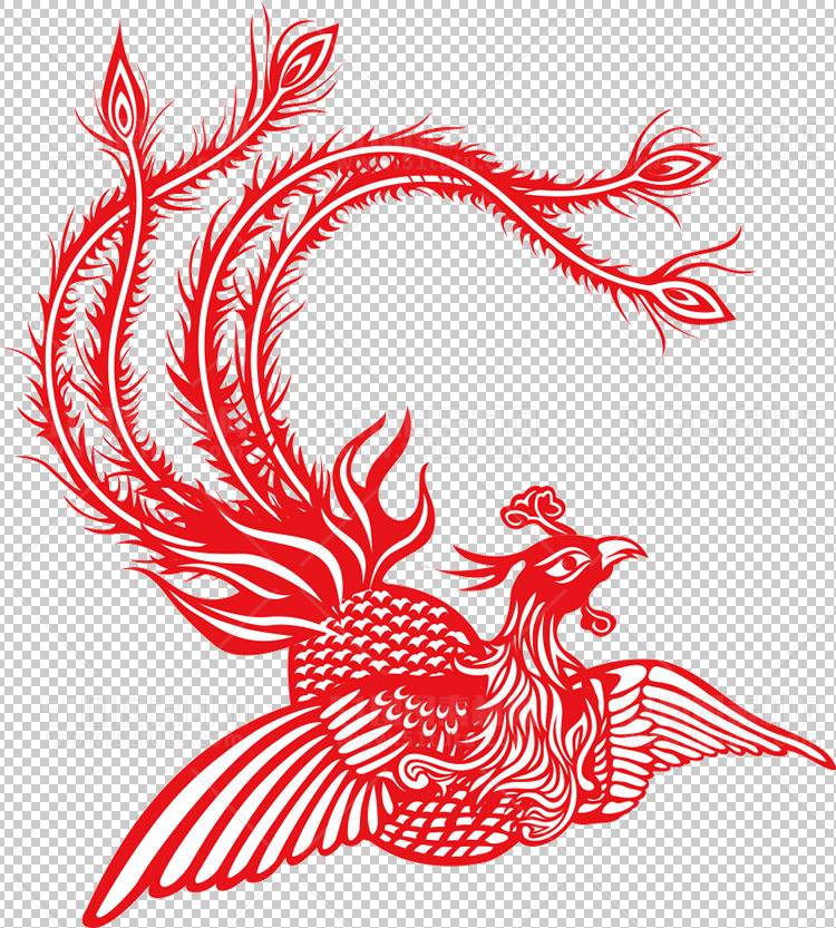 中国风古典龙凤剪纸PNG免抠图透明背景00178