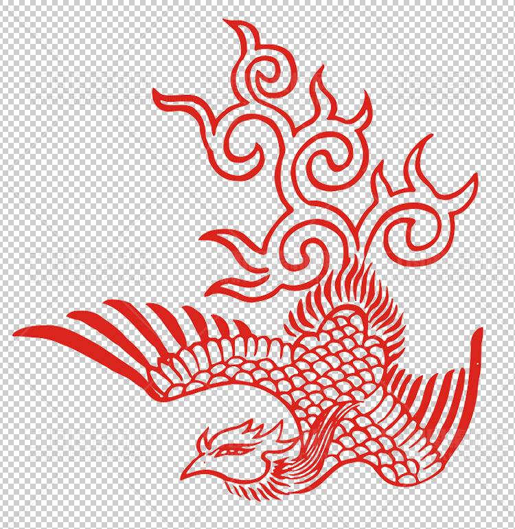 中国风古典龙凤剪纸PNG免抠图透明背景00183