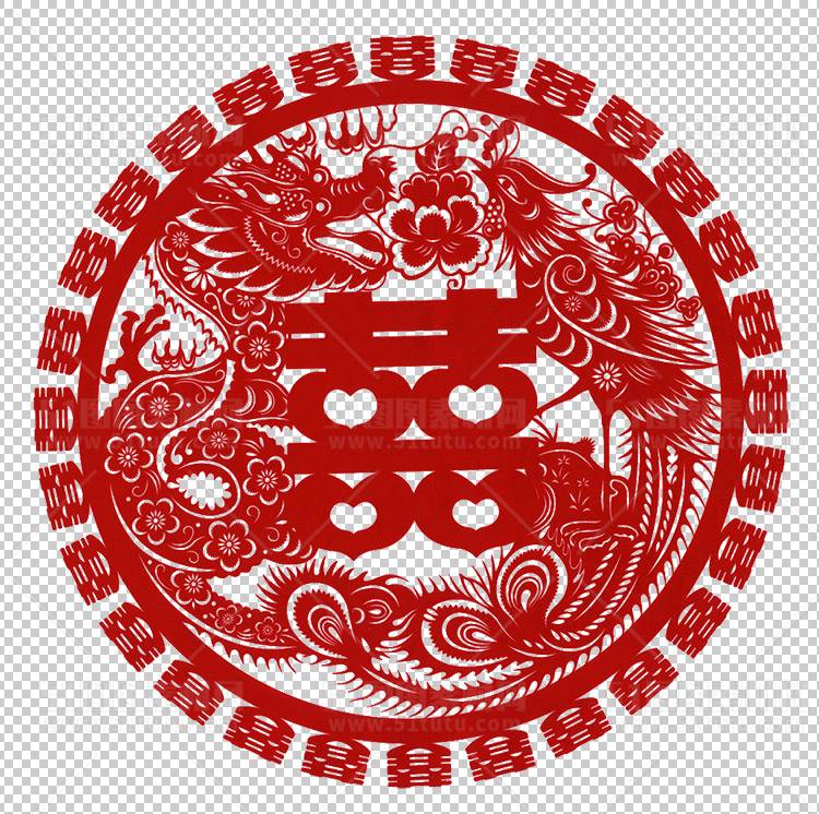 中国风古典龙凤剪纸PNG免抠图透明背景00186