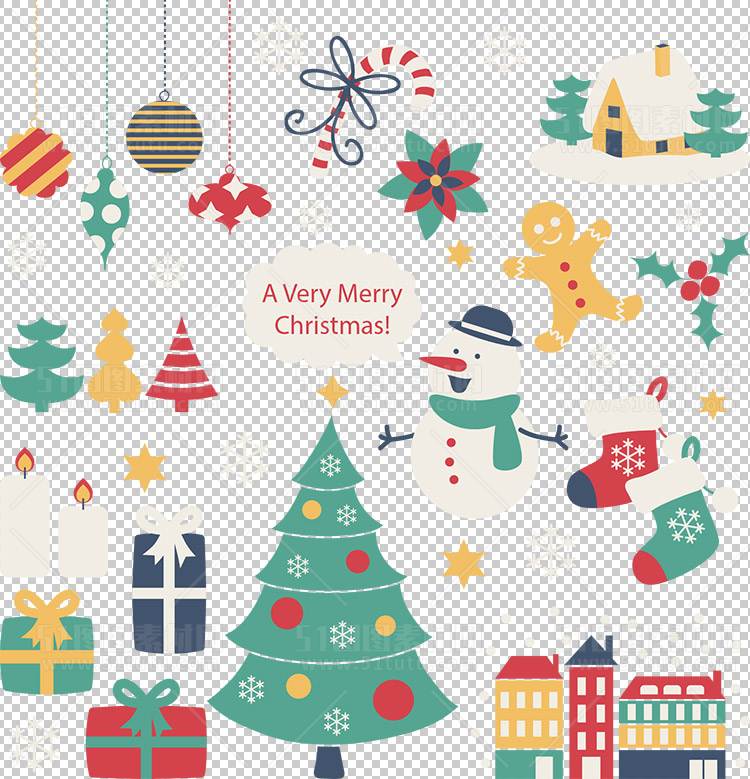 圣诞节素材PNG透明背景免抠图圣诞树老人雪花01063